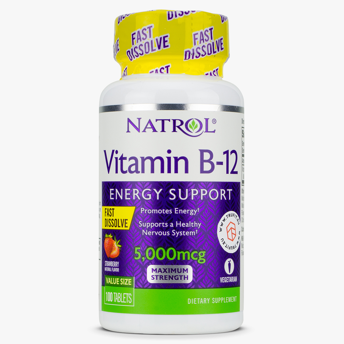 Vitamin B-12 is involved in the energy pathways in the body. It helps form healthy red blood cells, and plays a role in protecting healthy nerve cells. Natrol Vitamin B-12 delivers high-potency B-12 to support energy production.†